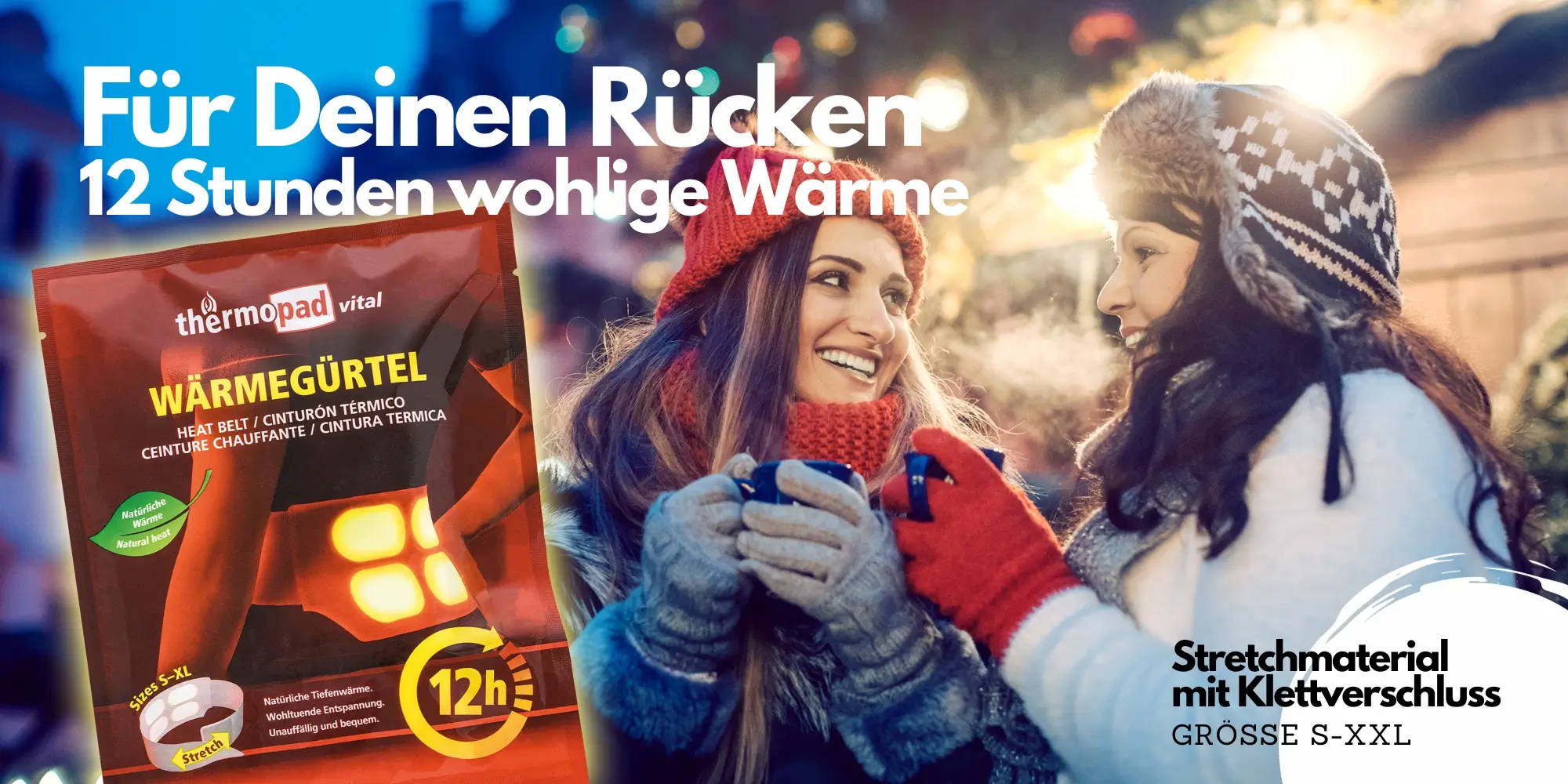 Luftaktivierter Wärmegürtel für wohltuende Entspannung durch Tiefenwärme für bis zu 12 Stunden. Unauffällig und bequem dank Stretchgürtel – auch für unterwegs.