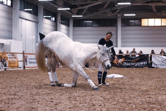 Gemeinsam haben wir neben gymnastischer Dressurarbeit die Freiheitsdressur und Zirzensik für uns entdeckt. Hier hat Duque viel Freude und ist ein echtes Showpferd geworden. Duque wohnt im Offenstall. Das ist zwar sehr artgerecht, aber ich bin im Winter eine echte Frostbeule. Kaum aus dem Auto gestiegen, sind meine Hände und Füße Eisklumpen.“