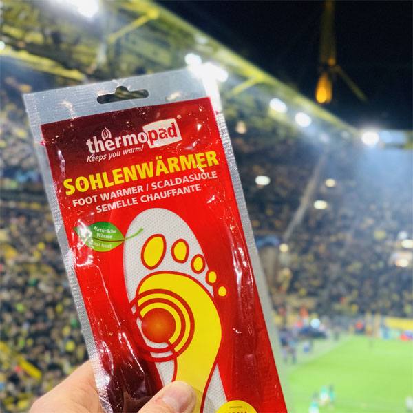 Allerdings sind die Wärmer bei seinen vielfältigen Outdoor-Aktivitäten ein treuer Begleiter – egal ob beim Skifahren oder im Stadion. Als treuer Fan von Borussia Dortmund müssen die Sohlenwärmer und auch die Rückenwärmer immer dabei sein, wenn es darum geht, den BVB anzufeuern. Zu den Heimspielen reicht es nur manchmal, wenn der BVB aber mal in der Nähe zu Gast ist, ist er meistens auf den Rängen zu sehen.