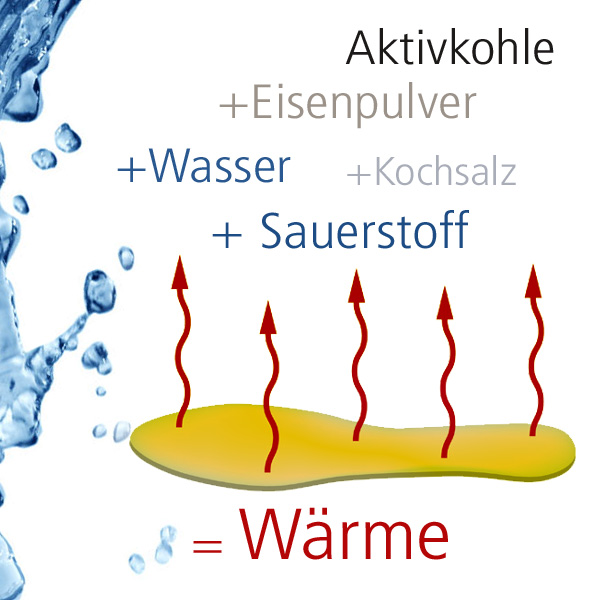 Das Eisen wird während der Reaktion mit Sauerstoff oxidiert. Die darunter freiwerdende Wärme wird über das umgebende Vlies an die Umgebung abgegeben.